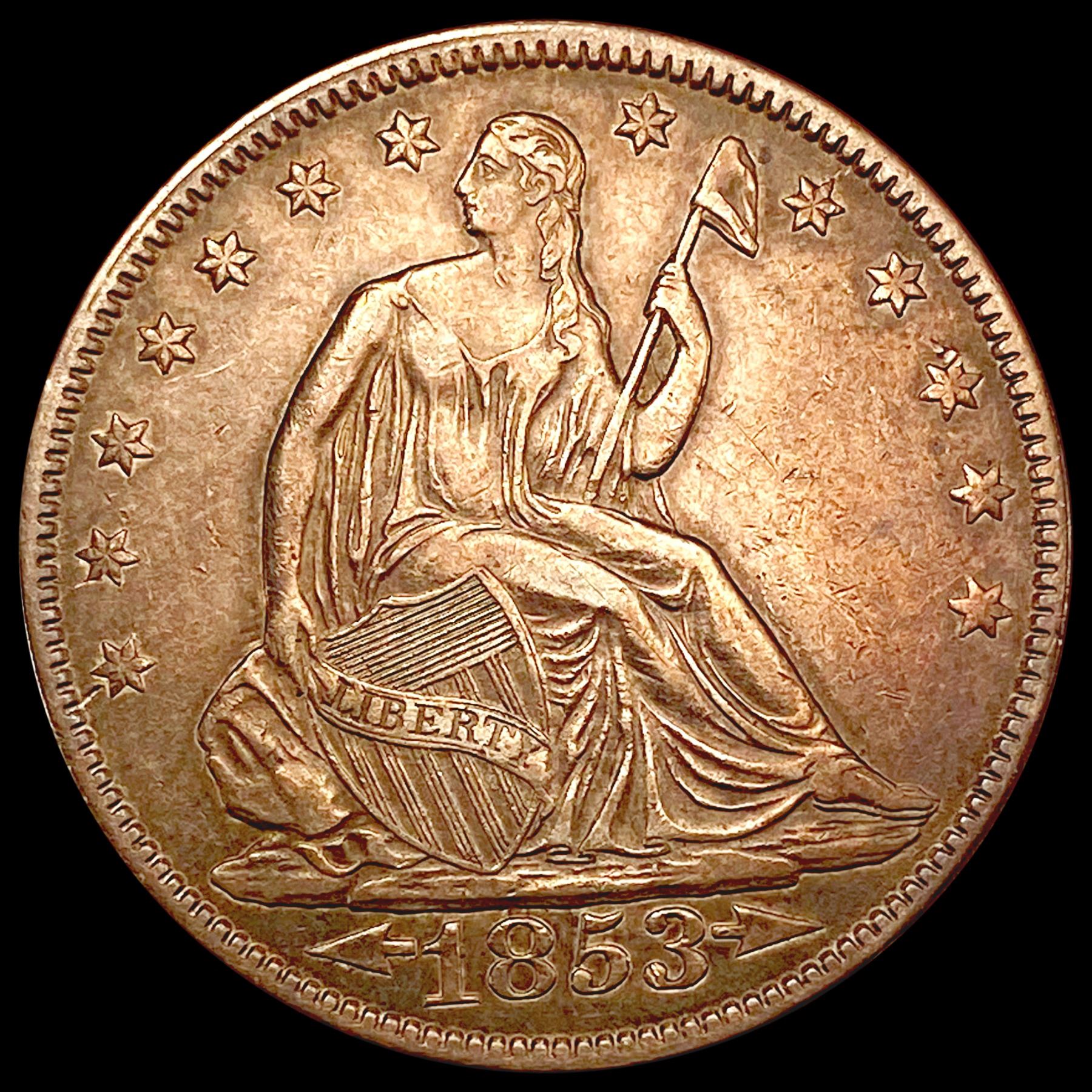 1853 Arrows Rays Seated Liberty Half Dollar CHOICE AU