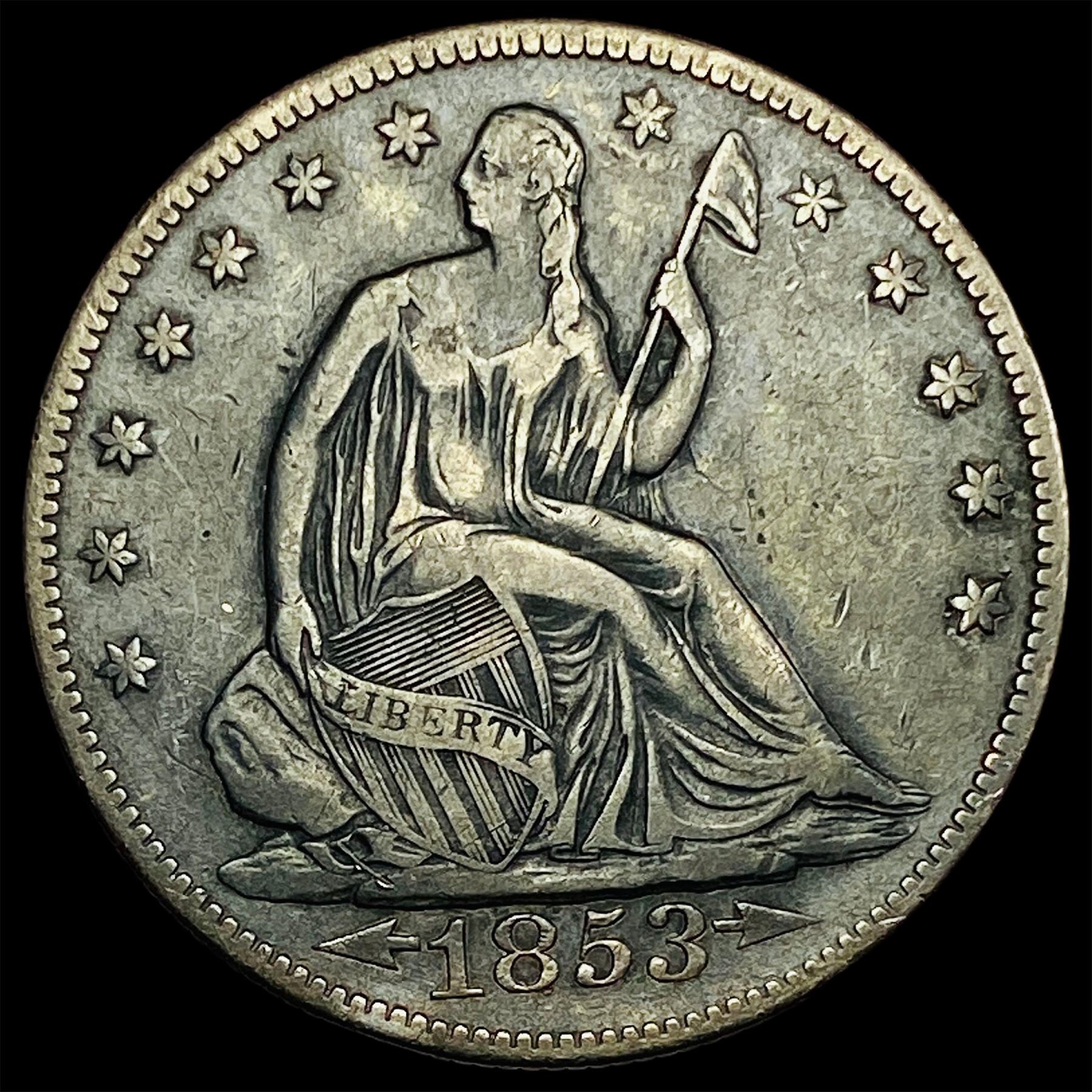 1853 Arrows/Rays Seated Liberty Half Dollar NEARLY UNCIRCULATED