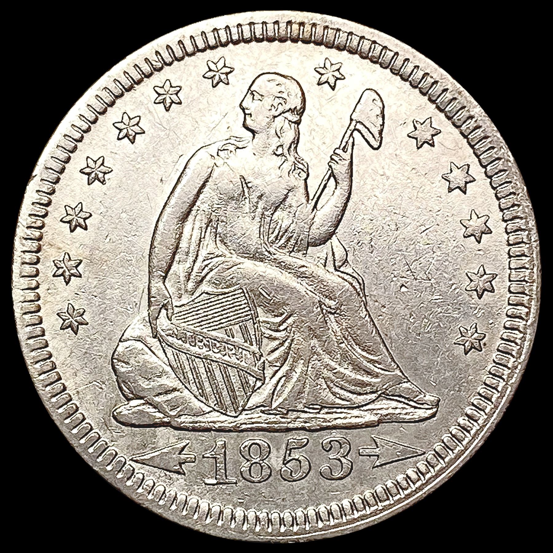 1853 Arrows & Rays Seated Liberty Quarter CLOSELY UNCIRCULATED