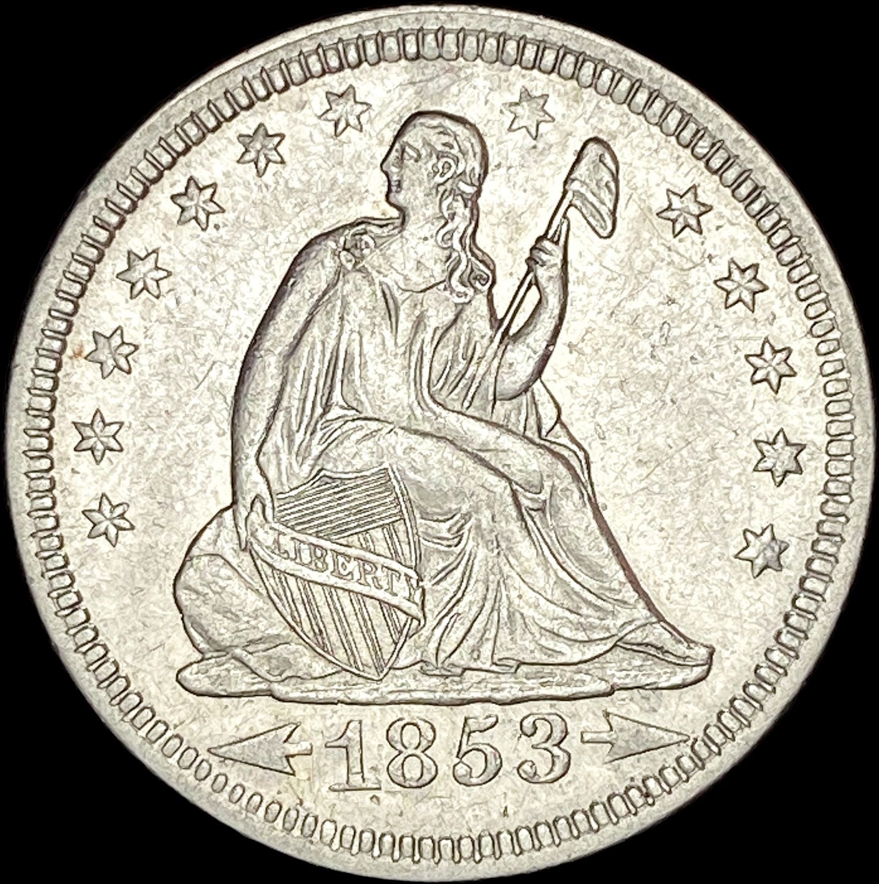 1853 Arrows/Rays Seated Liberty Quarter CLOSELY UNCIRCULATED