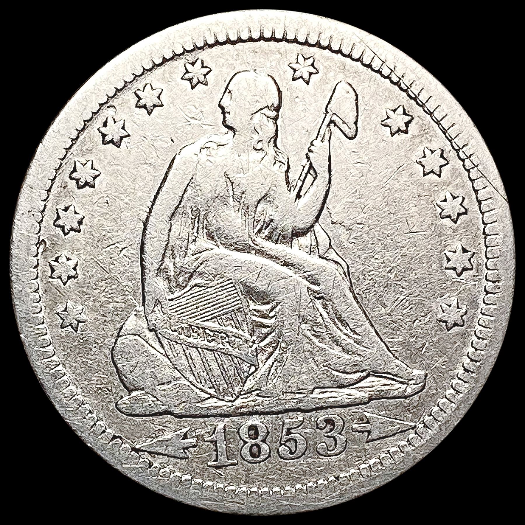 1853 Arrows & Rays Seated Liberty Quarter LIGHTLY CIRCULATED