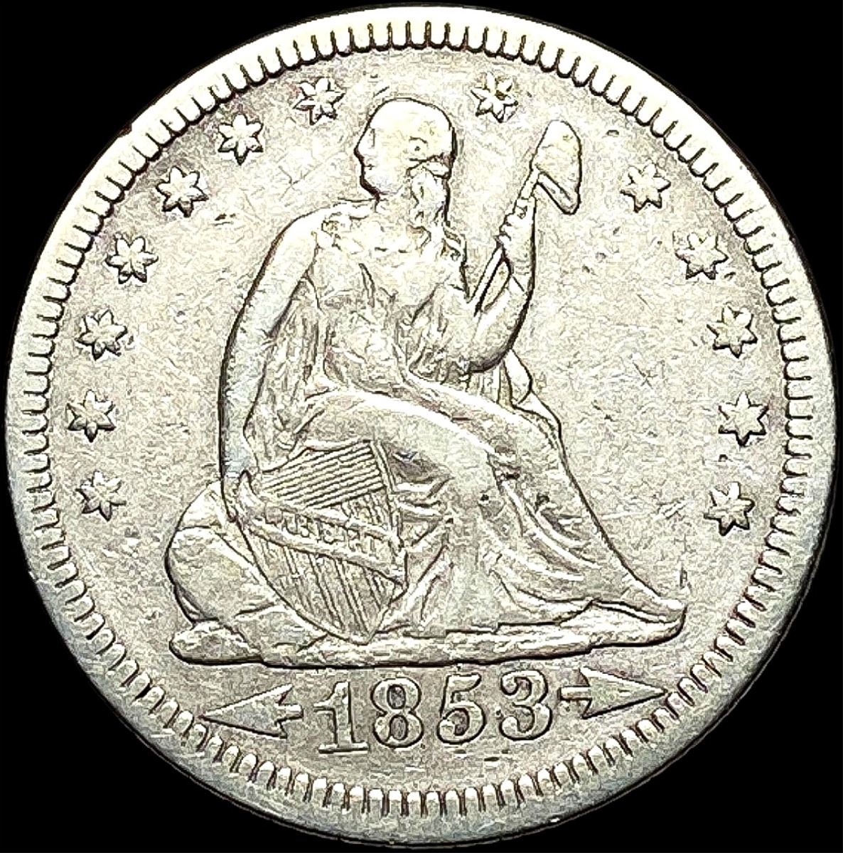 1853 Arrows/Rays Seated Liberty Quarter LIGHTLY CIRCULATED