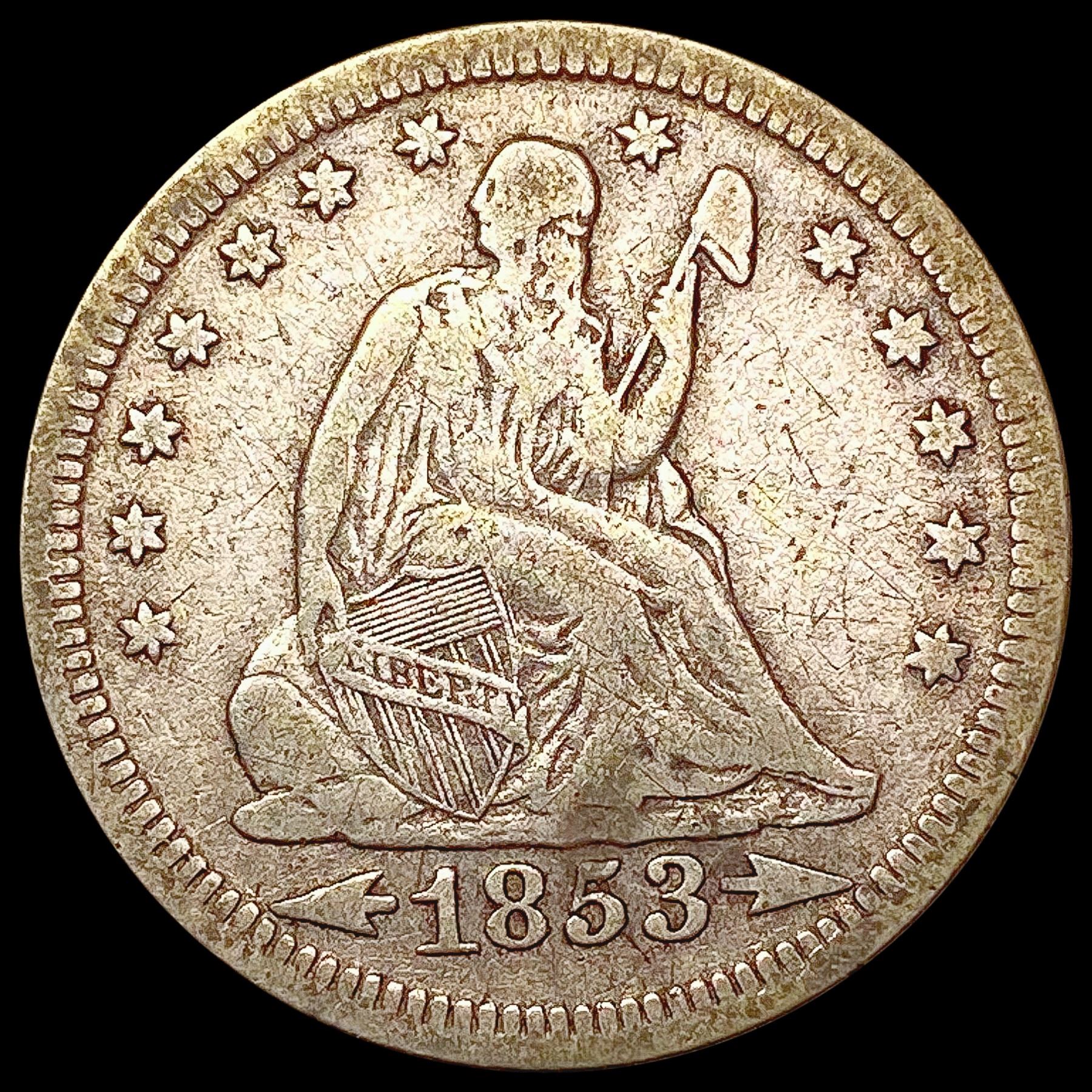 1853 Arrows Rays Seated Liberty Quarter LIGHTLY CI