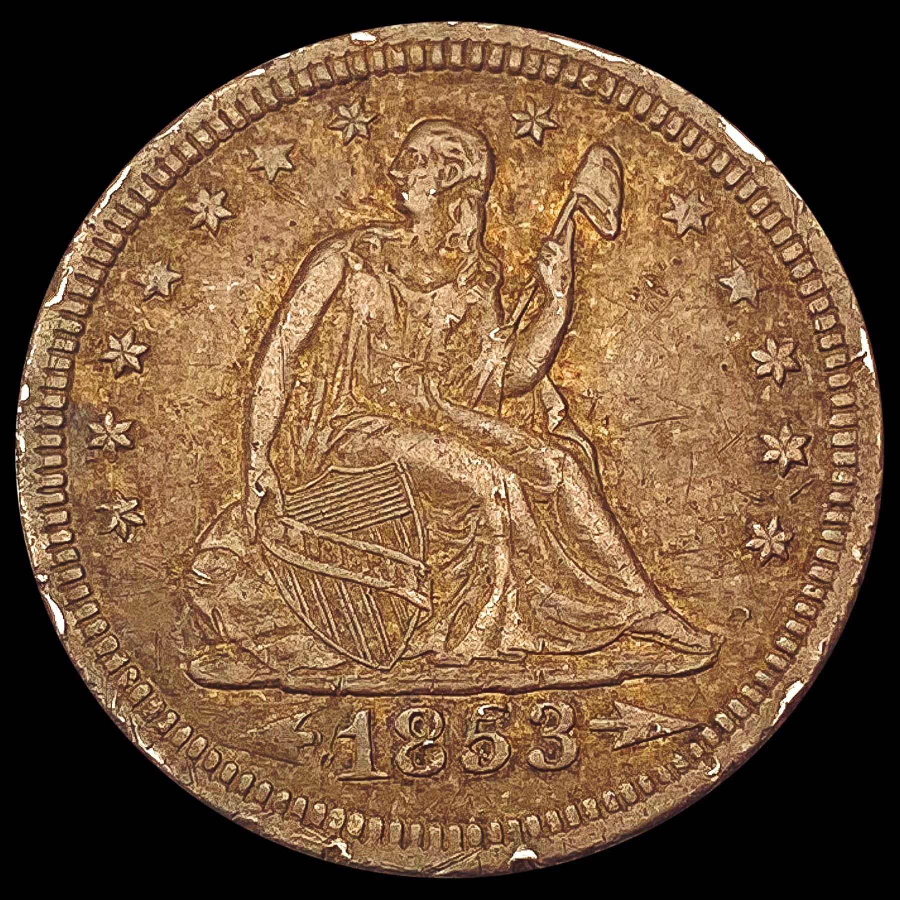1853 Arrows Rays Seated Liberty Quarter NEARLY UNCIRCULATED