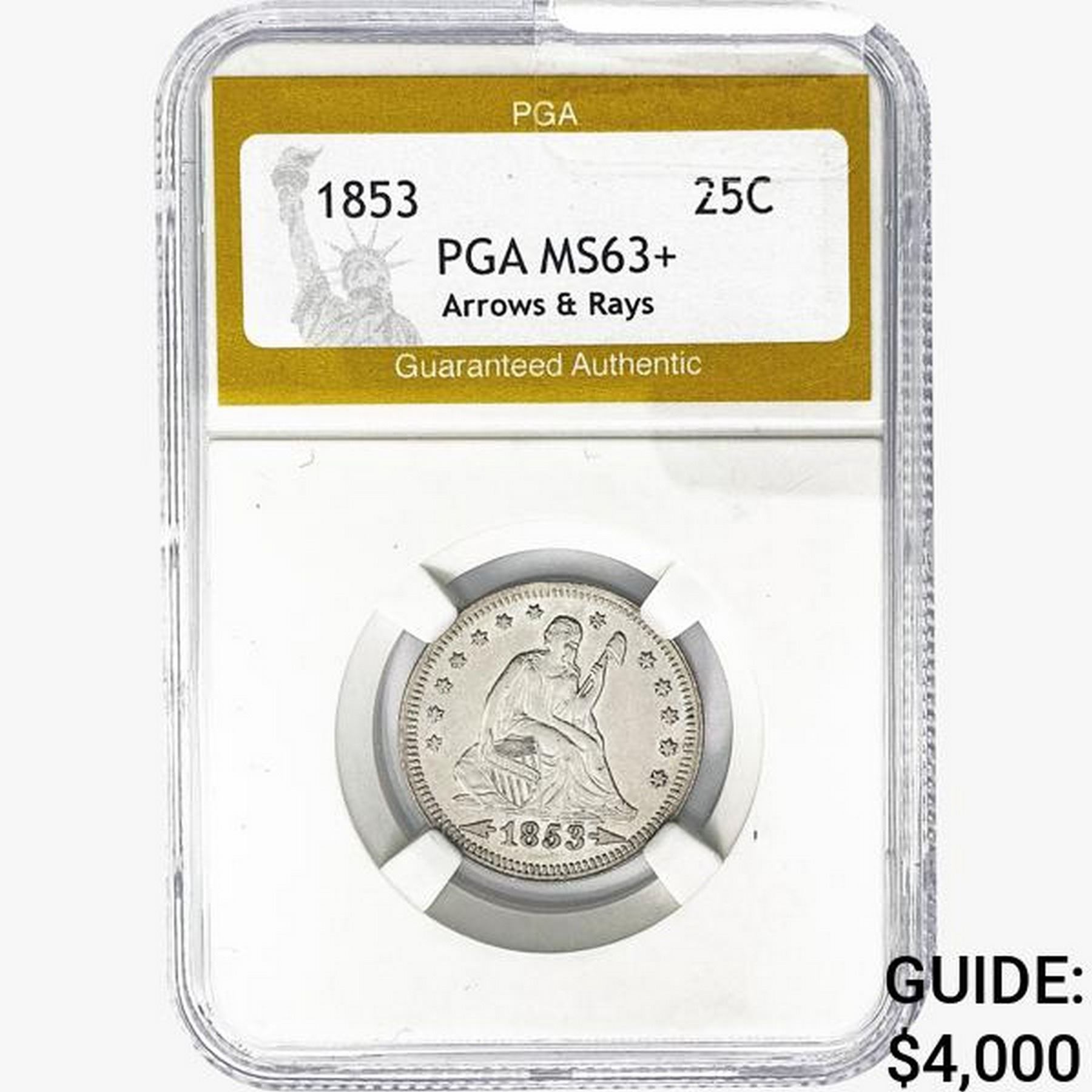 1853 Arrows/Rays Seated Liberty Quarter PGA MS63+