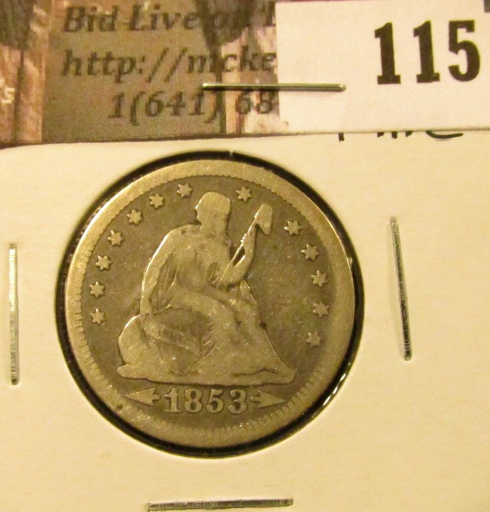 1853 Arrows & Rays U.S. Seated Liberty Quarters, Fine.