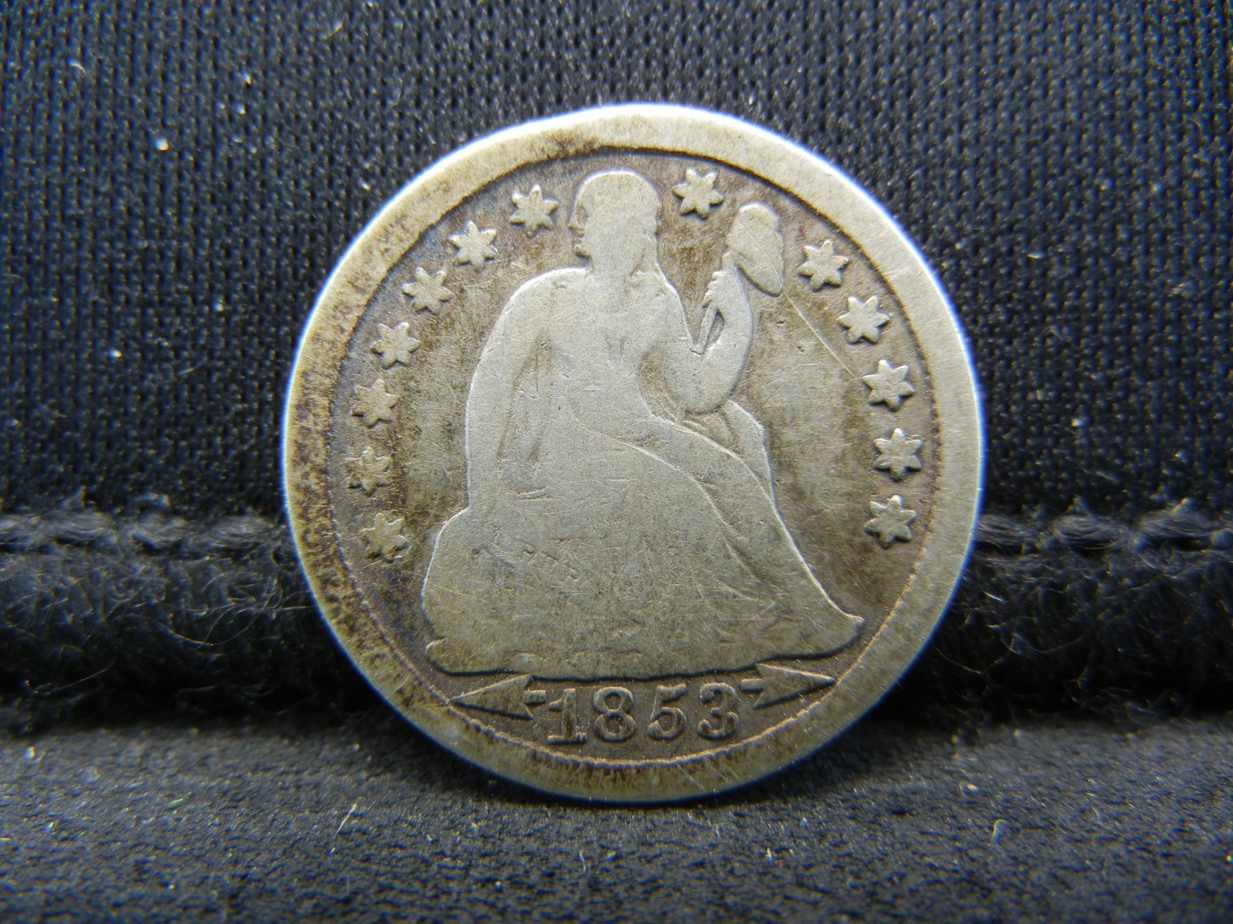 1853 Arrows Seated Dime