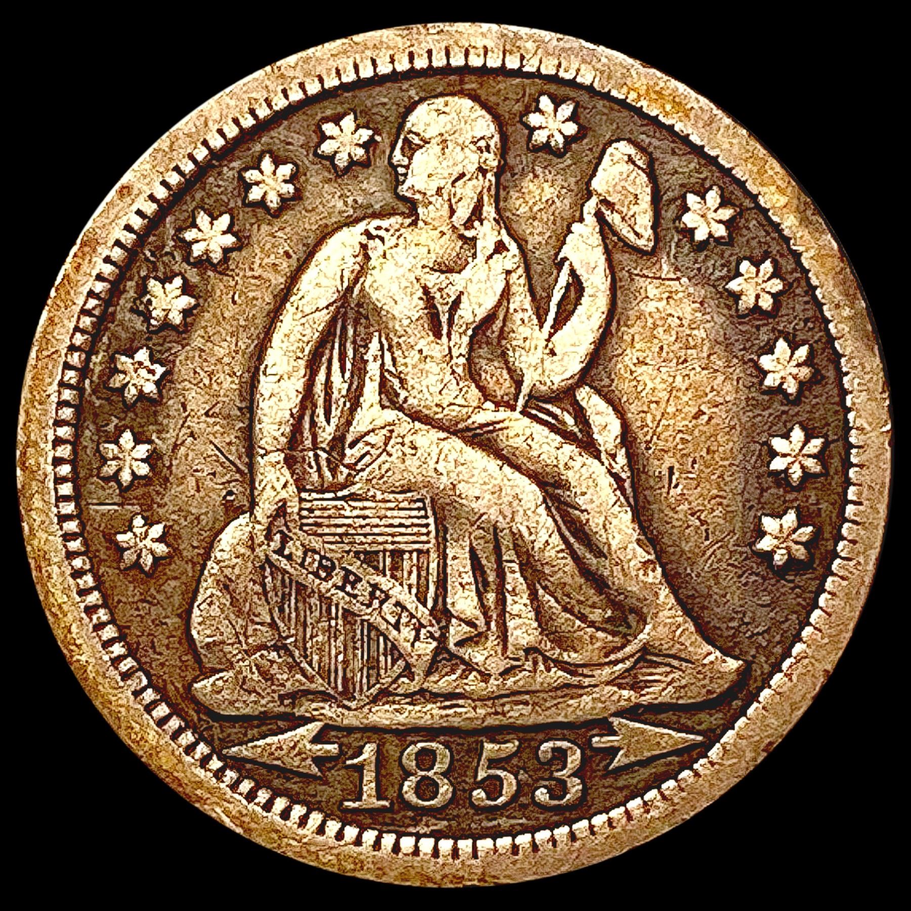 1853 Arrows Seated Liberty Dime ABOUT UNCIRCULATED