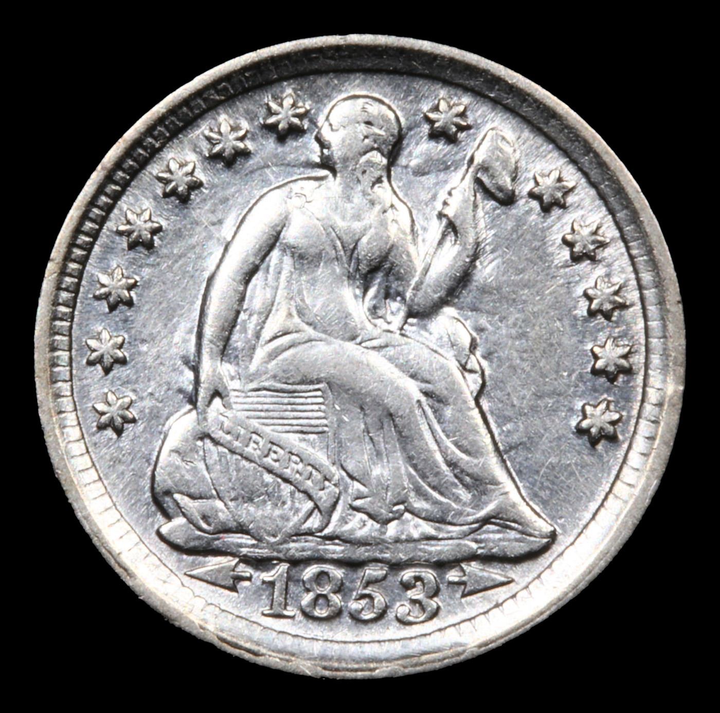 1853 Arrows Seated Liberty Half Dime 1/2 10c Grades Select AU.