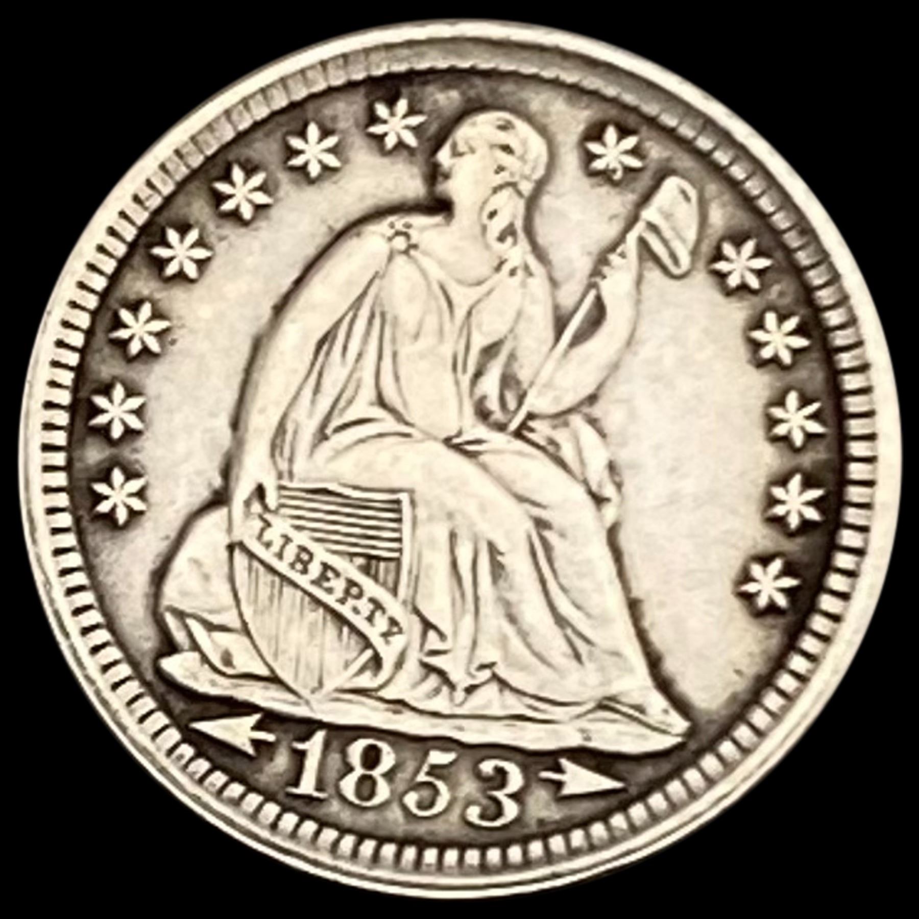 1853 Arrows Seated Liberty Half Dime CHOICE AU