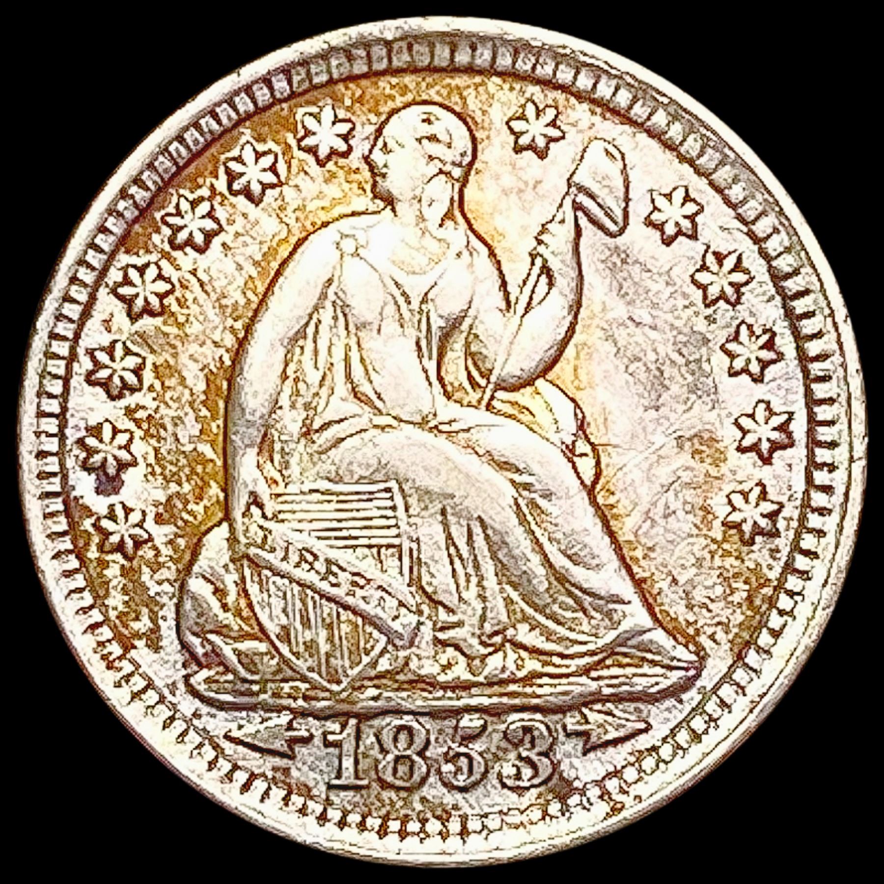 1853 Arrows Seated Liberty Half Dime CLOSELY UNCIRCULATED