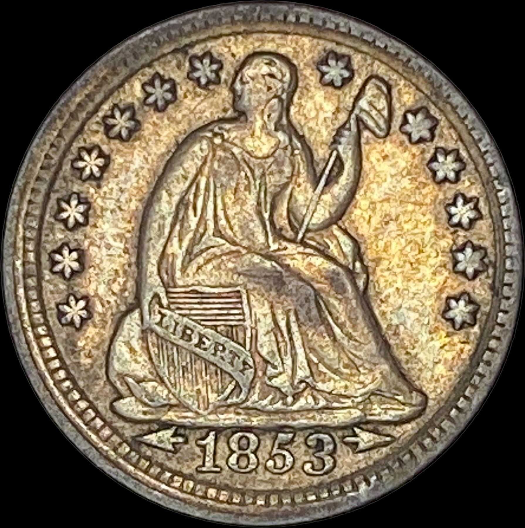 1853 Arrows Seated Liberty Half Dime CLOSELY UNCIRCULATED