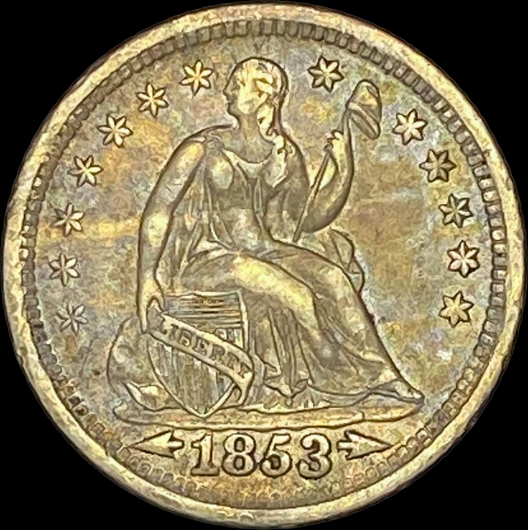 1853 Arrows Seated Liberty Half Dime CLOSELY UNCIRCULATED