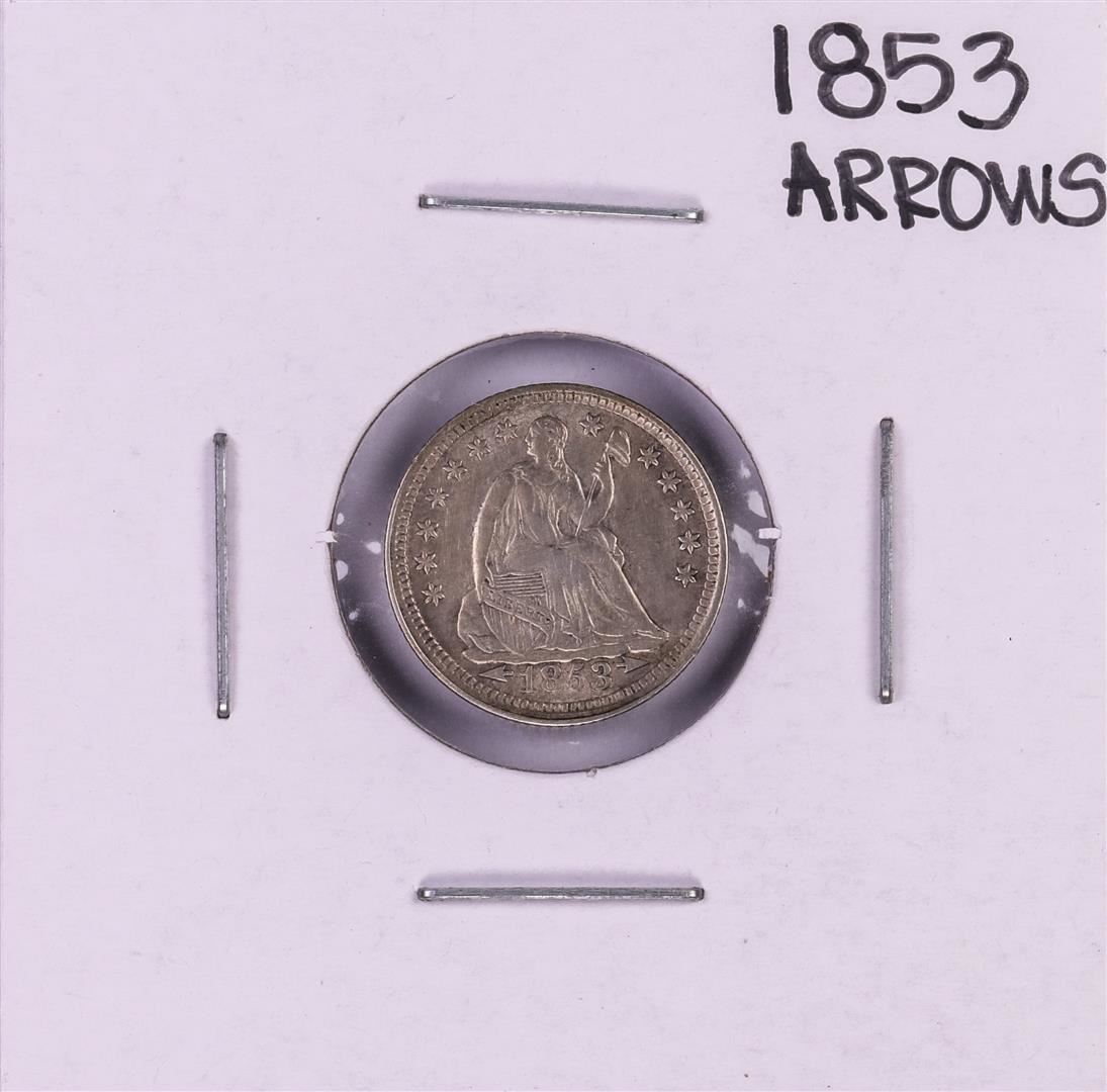 One 1853 Arrows Seated Liberty Half Dime Coin.