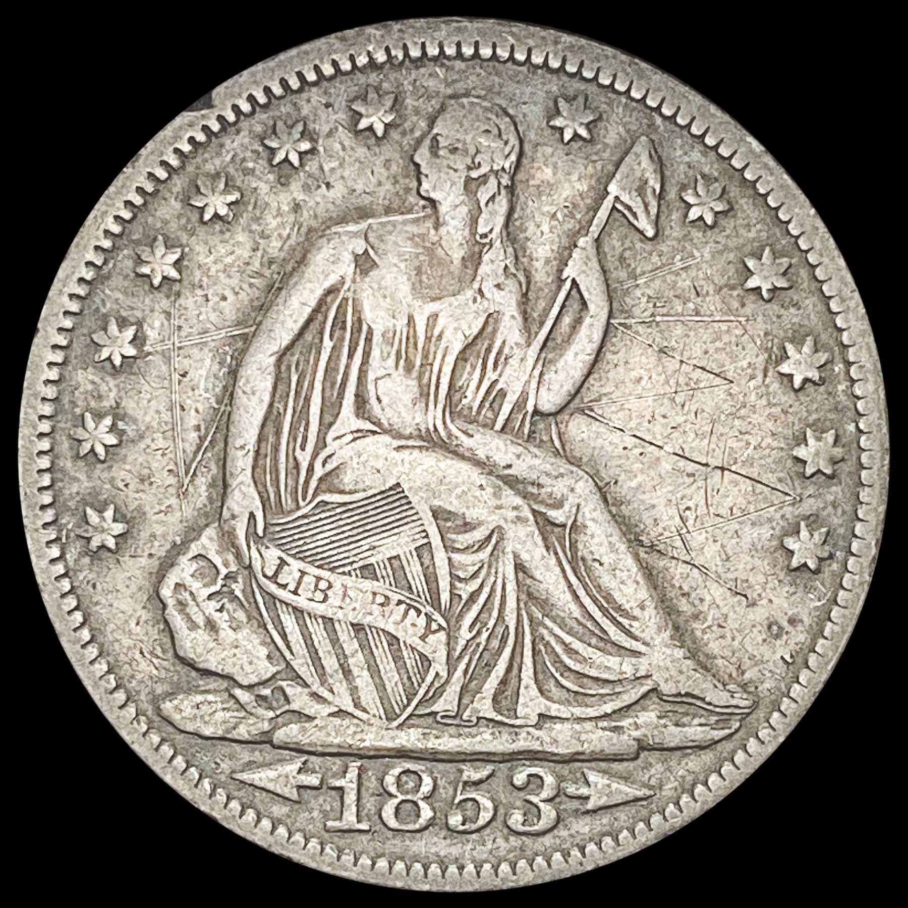1853 Arrows Seated Liberty Half Dollar LIGHTLY CIRCULATED