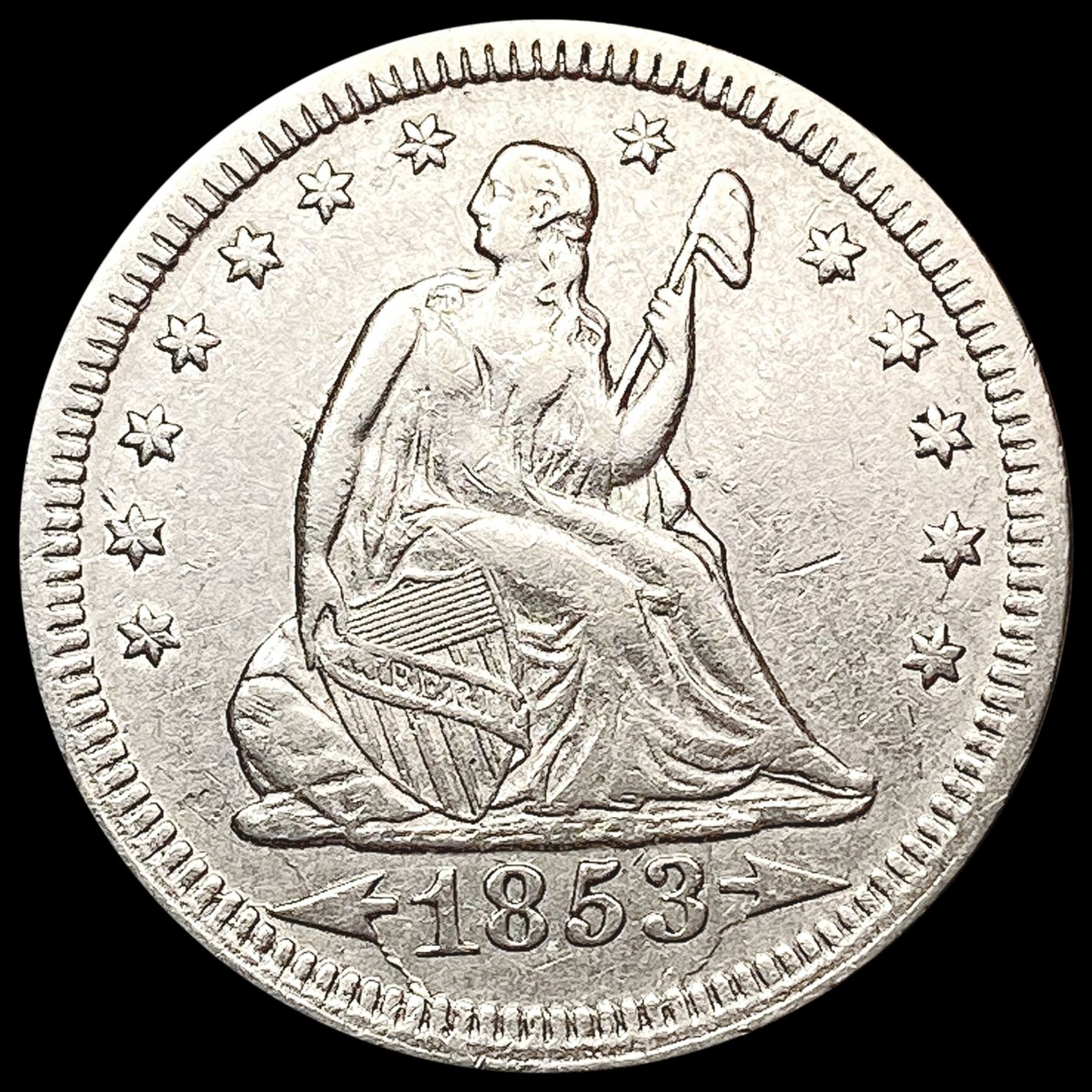 1853 Arrows and Rays Seated Liberty Quarter CLOSELY UNCIRCULATED