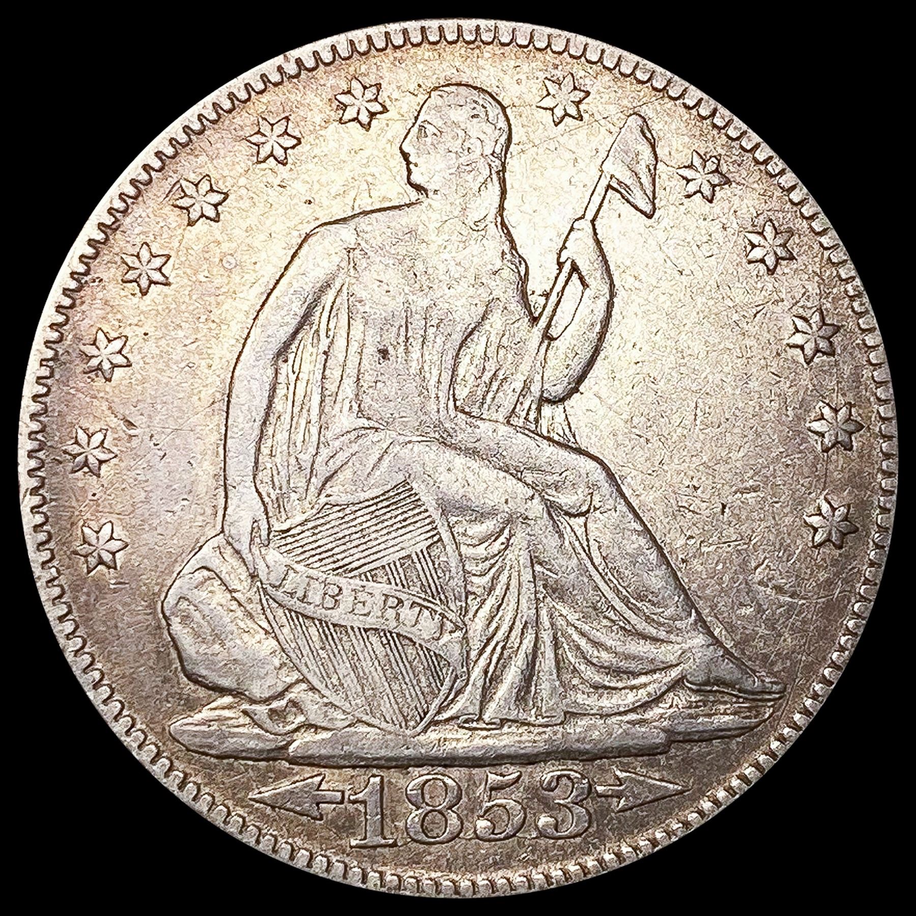 1853 Arws & Rays Seated Liberty Half Dollar ABOUT
