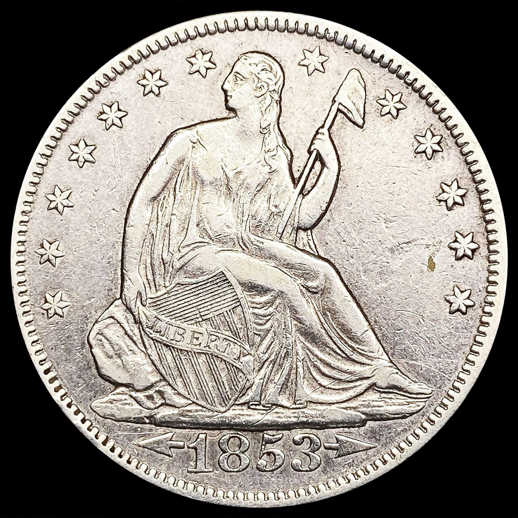 1853 Arws & Rays Seated Liberty Half Dollar CLOSEL