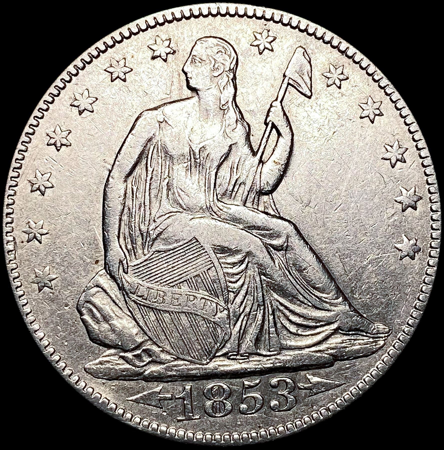 1853 Arws & Rays Seated Liberty Half Dollar CLOSEL