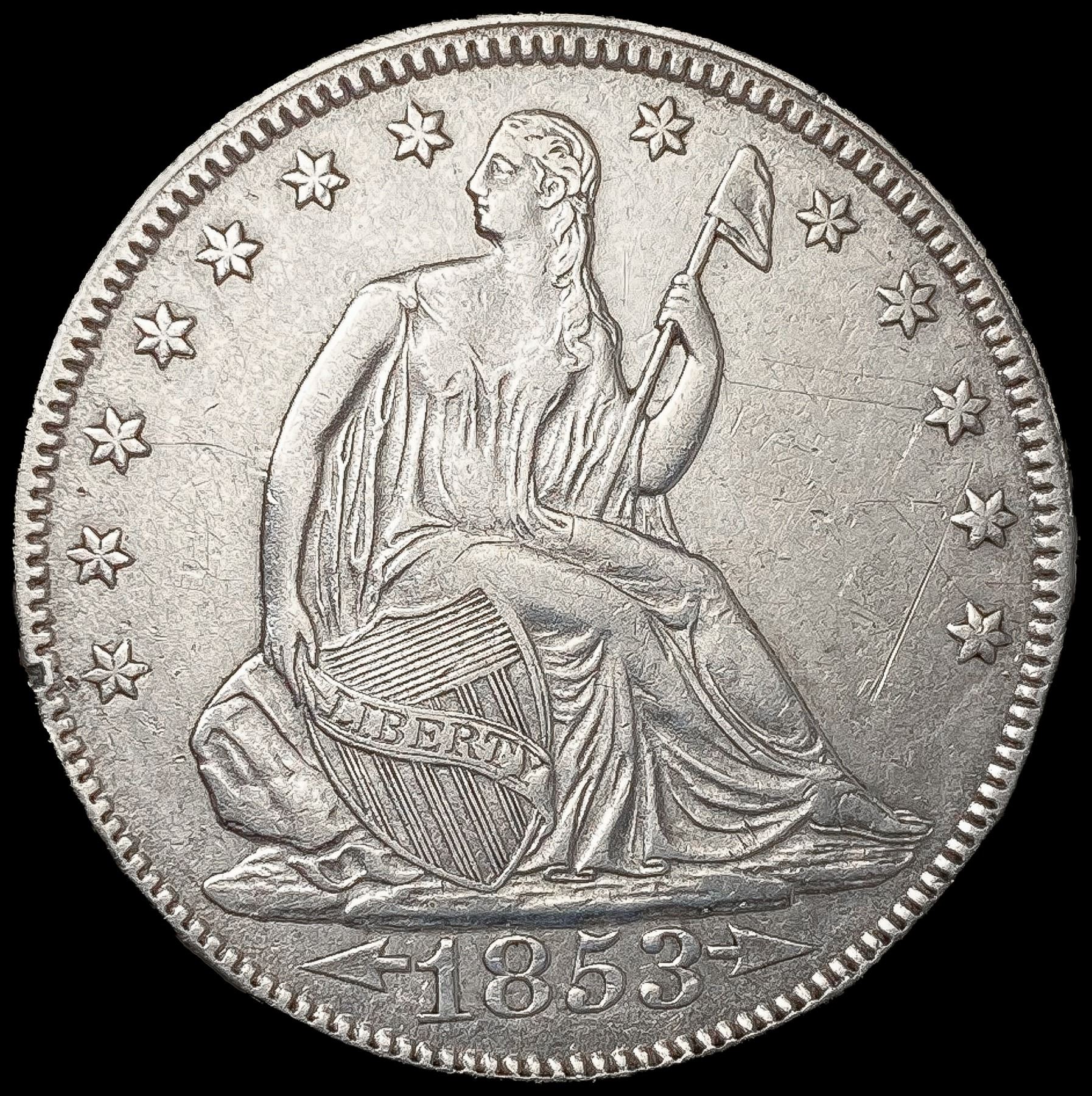 1853 Arws & Rays Seated Liberty Half Dollar CLOSEL