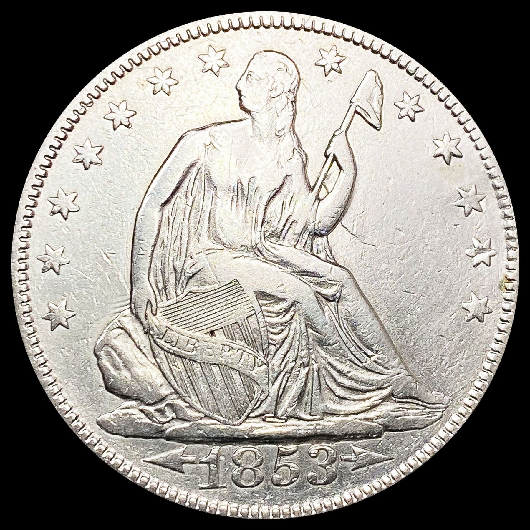 1853 Arws & Rays Seated Liberty Half Dollar NEARLY