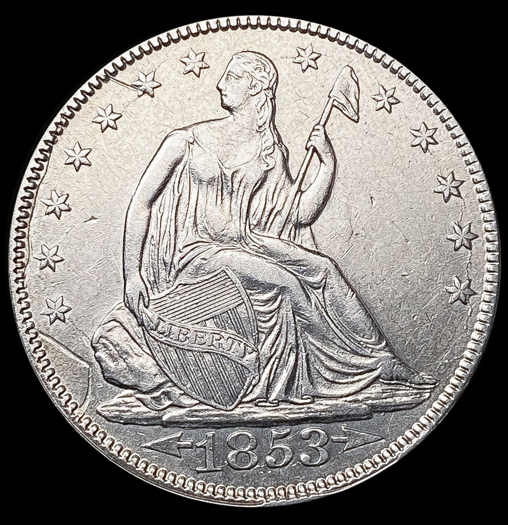 1853 Arws & Rays Seated Liberty Half Dollar UNCIRC