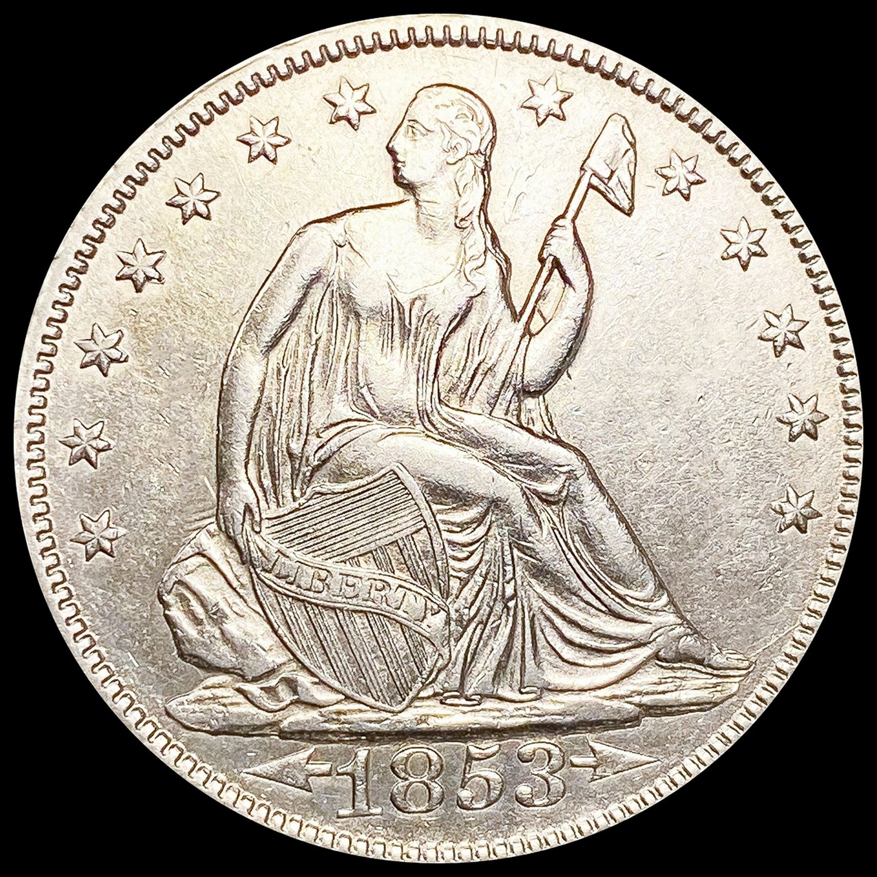1853 Arws & Rays Seated Liberty Half Dollar UNC