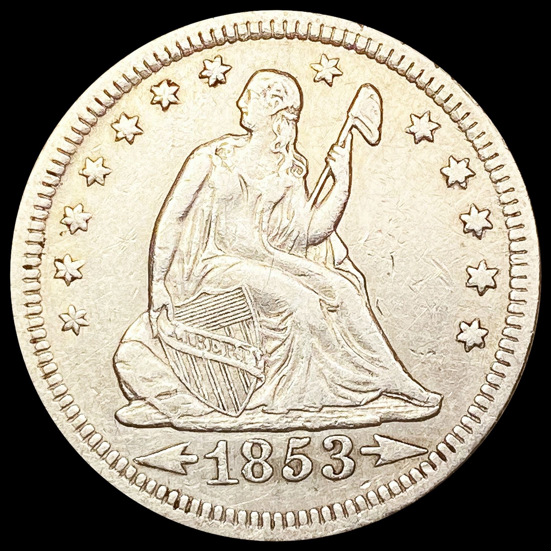 1853 Arws & Rays Seated Liberty Quarter ABOUT UNCI