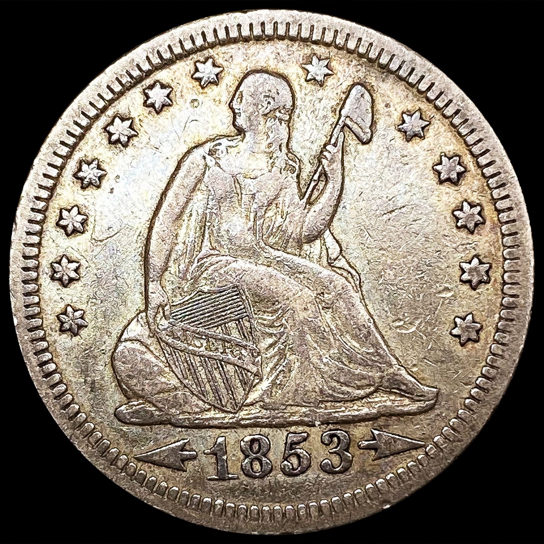 1853 Arws & Rays Seated Liberty Quarter CLOSELY UN