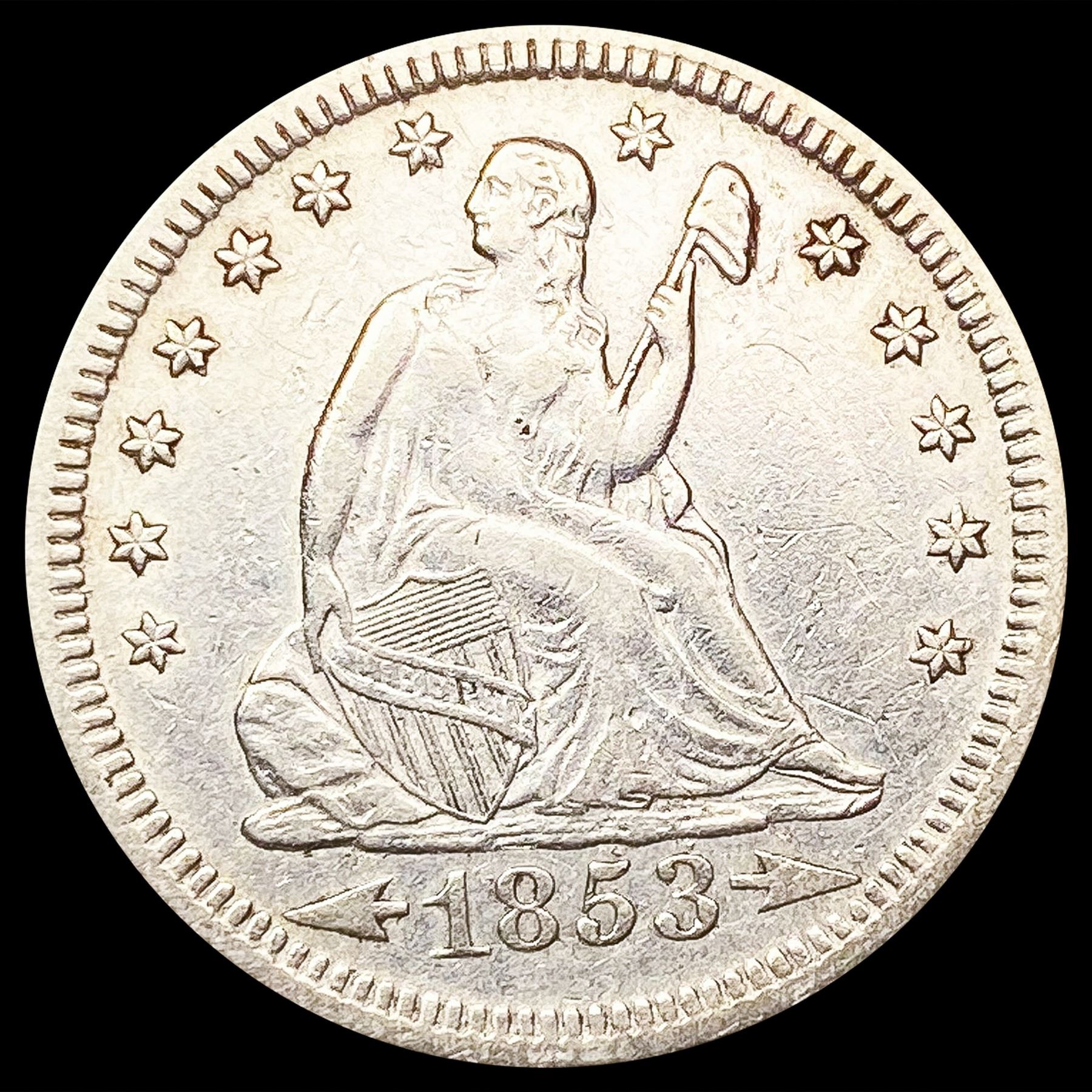 1853 Arws & Rays Seated Liberty Quarter CLOSELY UN
