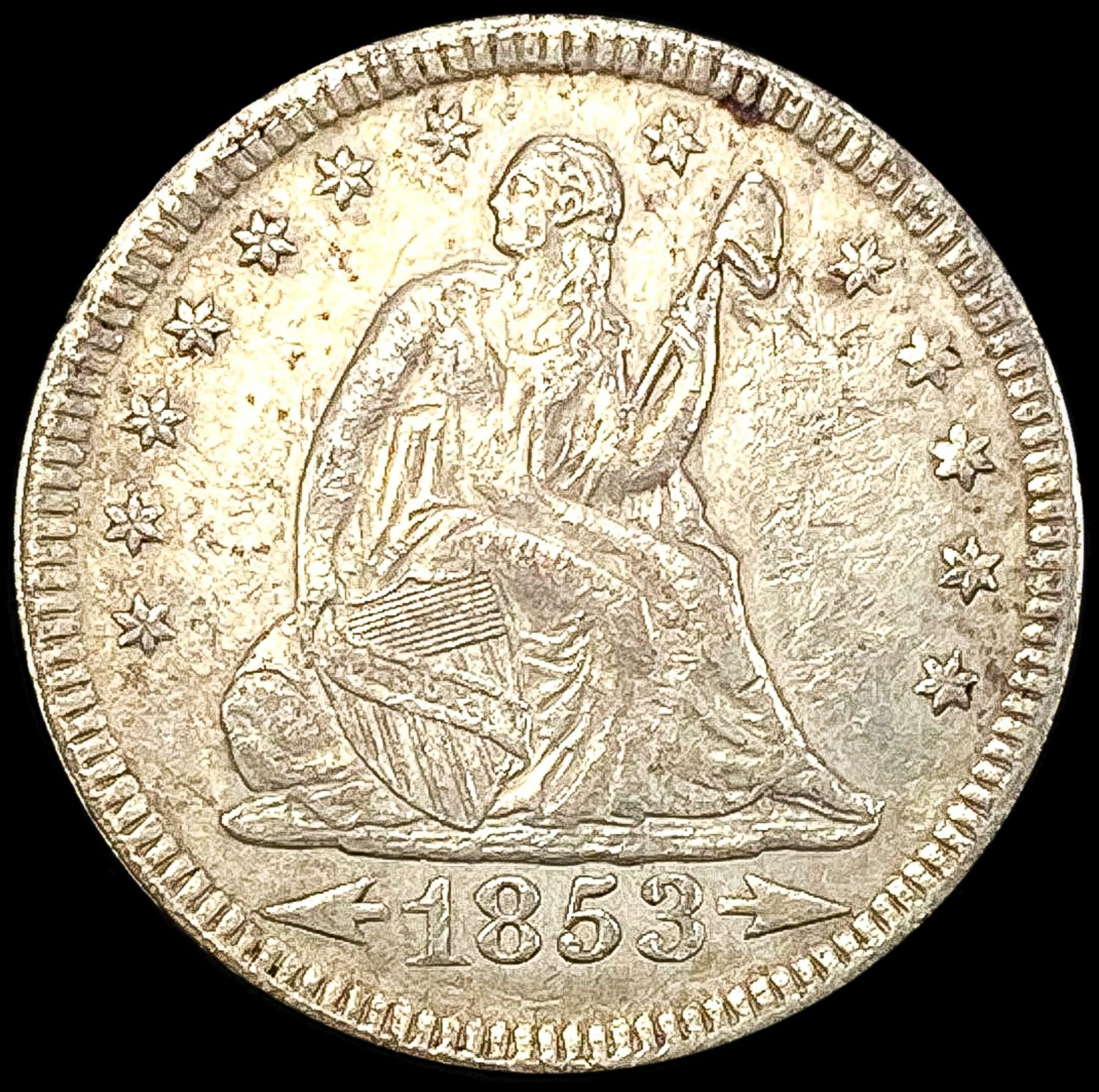 1853 Arws & Rays Seated Liberty Quarter CLOSELY UN