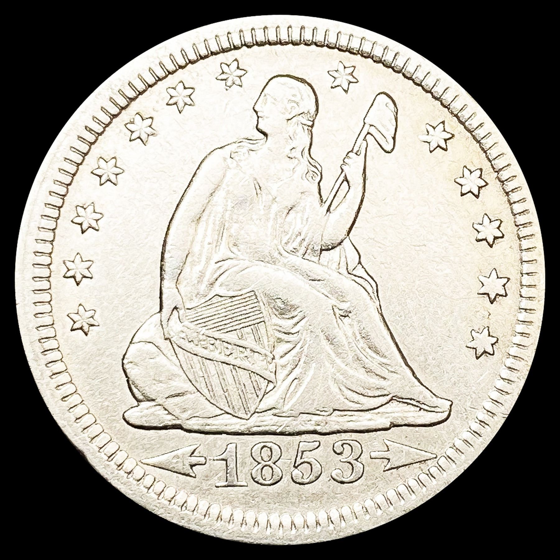 1853 Arws & Rays Seated Liberty Quarter CLOSELY UN