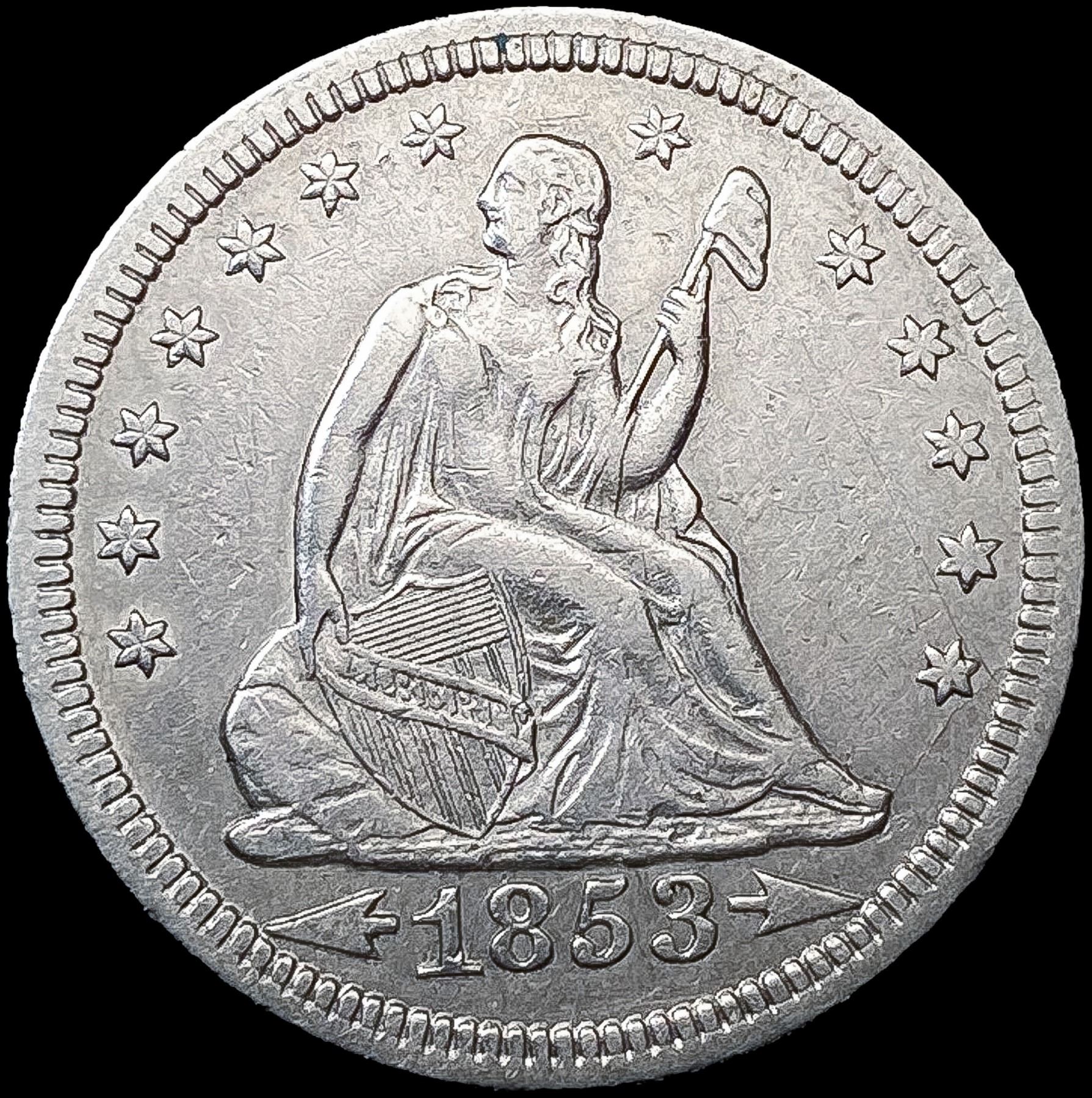 1853 Arws & Rays Seated Liberty Quarter CLOSELY UN