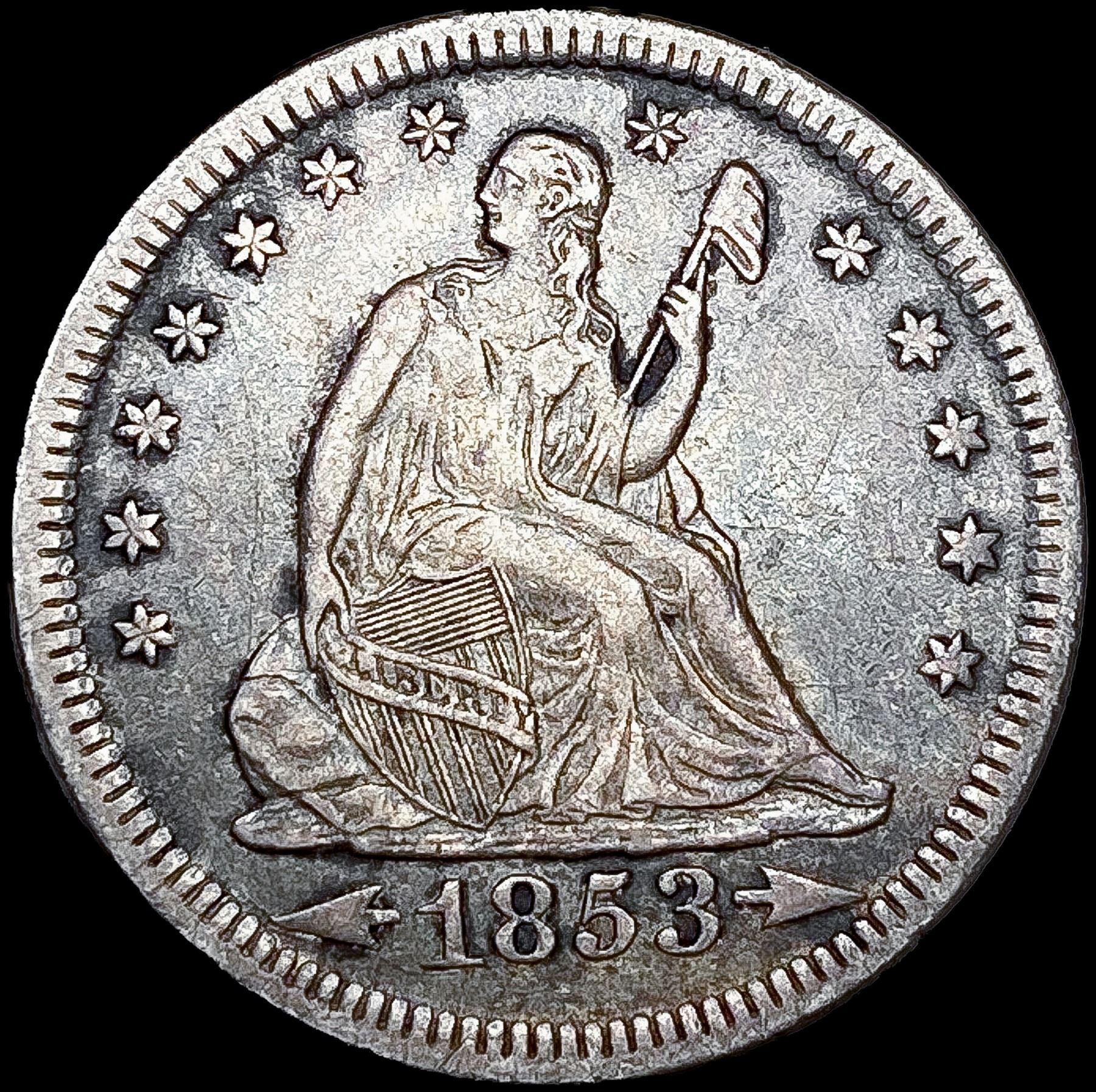 1853 Arws & Rays Seated Liberty Quarter CLOSELY UN