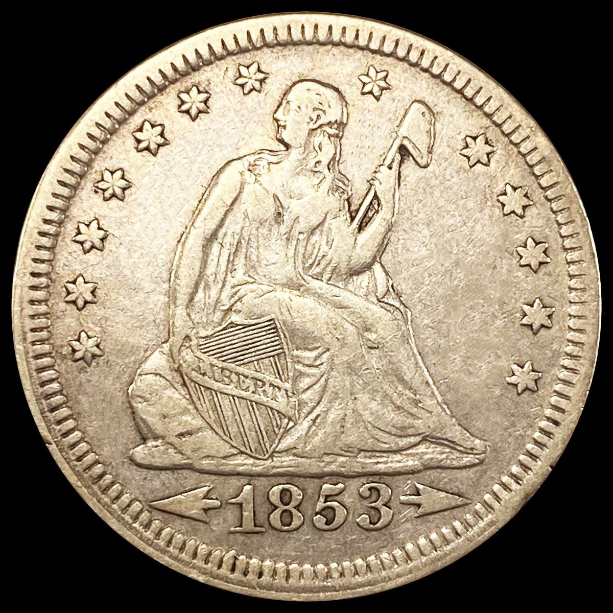 1853 Arws & Rays Seated Liberty Quarter NEARLY