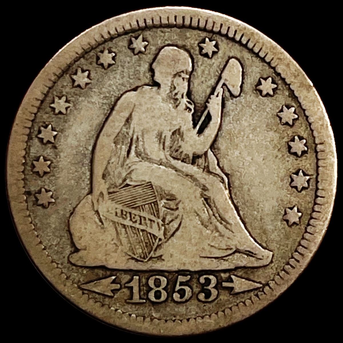 1853 Arws & Rays Seated Liberty Quarter NICELY