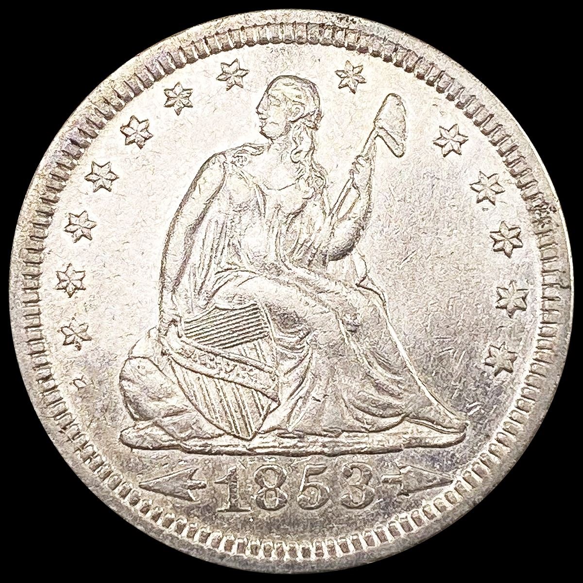 1853 Arws & Rays Seated Liberty Quarter UNC