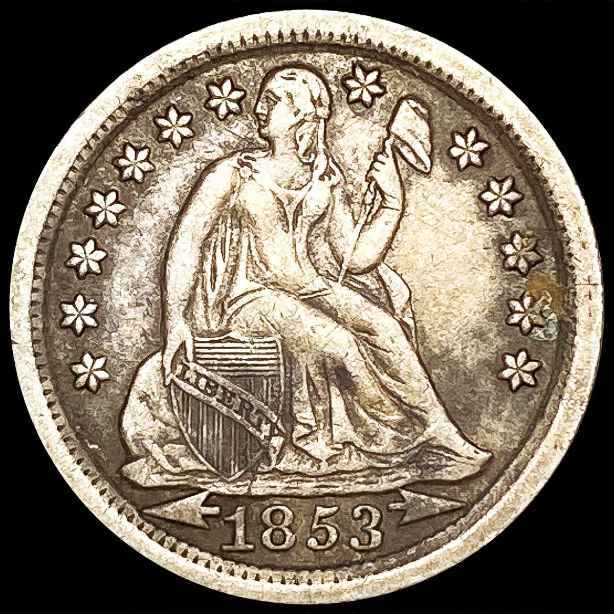 1853 Arws Seated Liberty Dime
