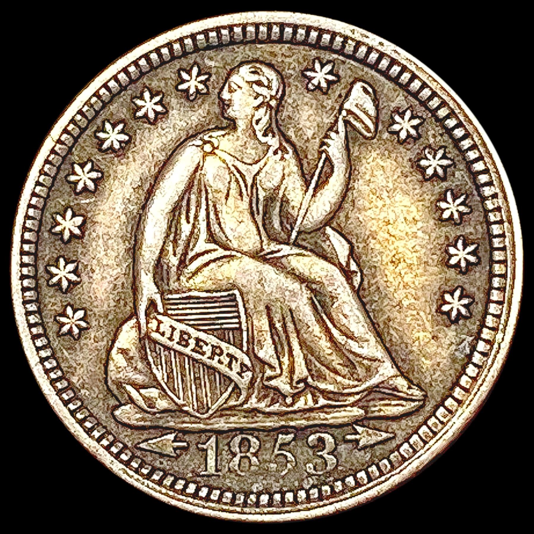 1853 Arws Seated Liberty Half Dime CLOSELY UNCIRCU