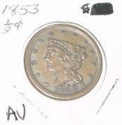 1853 BRAIDED HAIR 1/2 CENT *EXTREMELY RARE AU HIGH GRADE - HARD TO FIND COIN!! ***Coin & Currency Grades, Conditions and Values are not Northern Colorado Estate Liquidators Responsibilty. Grades, Condition and Values are determined by Consigner(s) & Buyers ONLY***