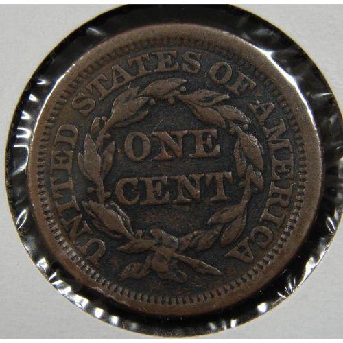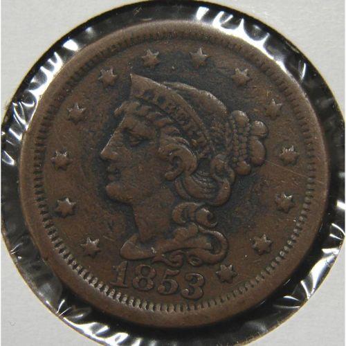 1853 U.S. BRAIDED HAIR LARGE CENT. VF.