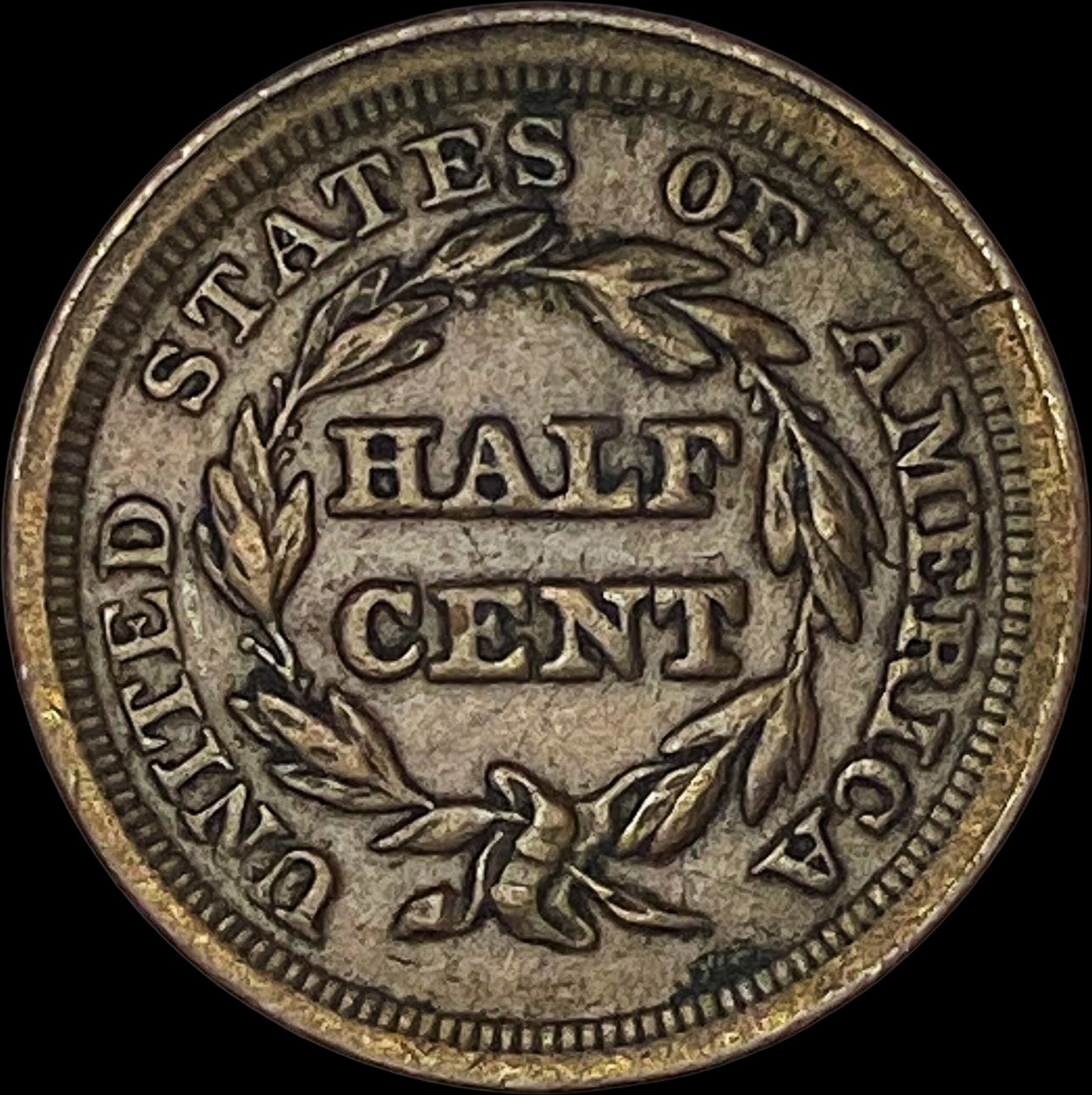 1853 Braided Hair Half Cent CLOSELY UNCIRCULATED