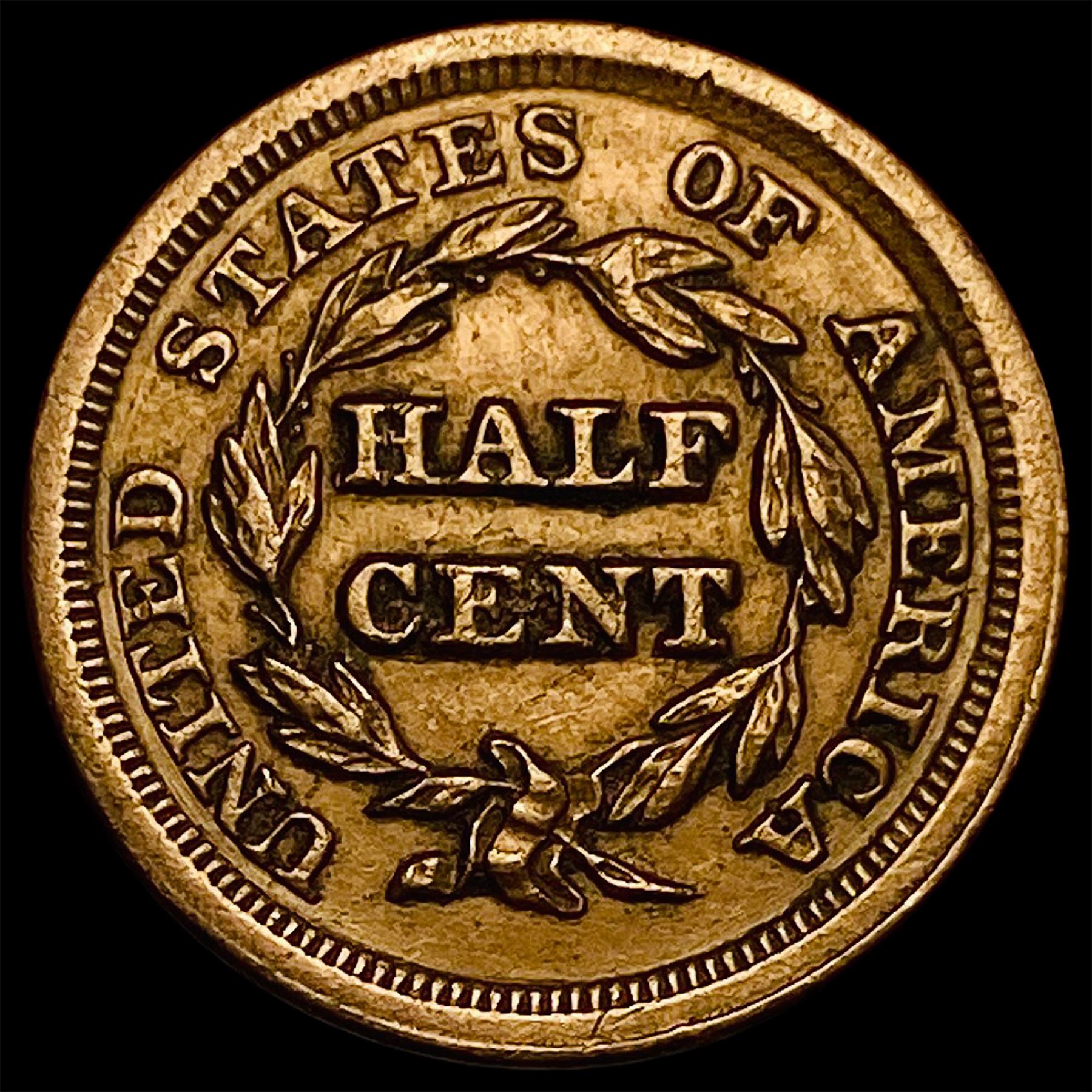 1853 Braided Hair Half Cent CLOSELY UNCIRCULATED