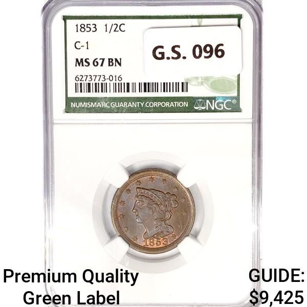 1853 Braided Hair Half Cent NGC MS67 BN C-1