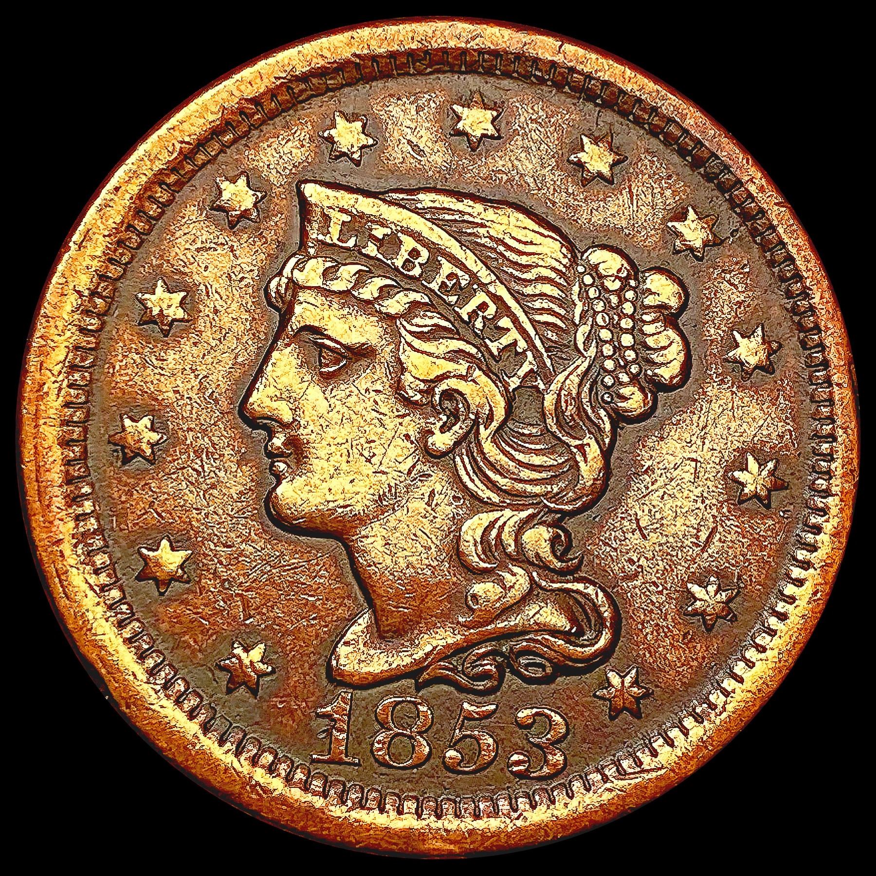 1853 Braided Hair Large Cent CLOSELY UNCIRCULATED