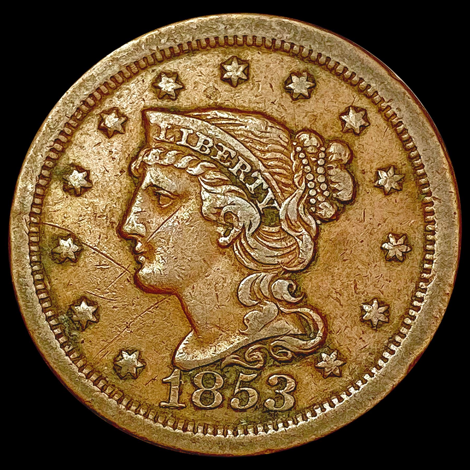 1853 Braided Hair Large Cent CLOSELY UNCIRCULATED