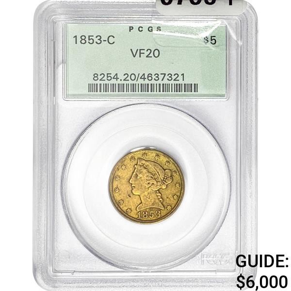 1853-C $5 Gold Half Eagle PCGS VF20
