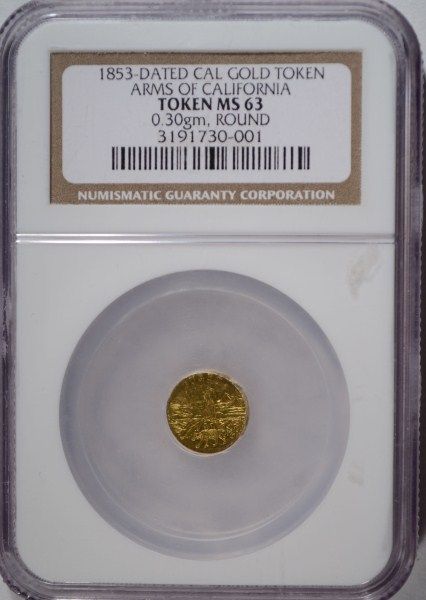 A NICE HIGH GRADE CAL GOLD TOKEN ESTIMATE, $275.00 TO $300.00