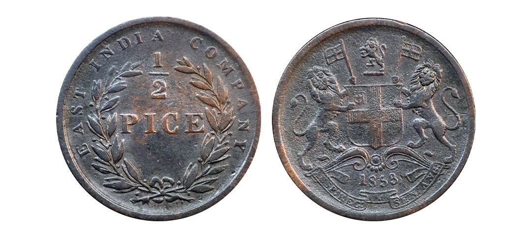 1853, Copper ½ Pice, 3.27 gms,