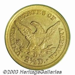 1853-D $2 1/2 MS61 PCGS. Variety 16-M. (per Doug Winter's second edition and revised attribution system). The only variety for this year. Reverse of 1850-1859.RARITY INFORMATION: The 1853-D is the eighth rarest of twenty Dahlonega quarter eagles. In high grades it is the ninth rarest. There were only 3,178 pieces struck, of which an estimated 85-95 coins are known today. Of these, around twenty grade AU while there are five or six known in Uncirculated. The finest we have seen is the PCGS MS61 in the Duke's Creek Collection. There are at least three others graded similarly by PCGS (the current population figure for MS61 coins is swelled by resubmissions) and there is a single MS62 at NGC.STRIKE: This issue is not generally very well struck. The Green Pond Collection example has a very good strike on the obverse with the curl above the ear showing good definition, full radial lines on some of the stars, and clearly separated denticles. The reverse is weak on the eagle's right leg and left claw. Some of the denticles are blurred, especially from 6 to 11 o'clock. This reverse weakness is seen on all 1853-D quarter eagles.SURFACES: There are a few fine hairlines (not from cleaning) in the left obverse field and a small mark opposite the northwest point of the final star. The reverse has no marks of note except for an very shallow scrape behind the eagle's head. A slight trace of haze can be seen on both sides. The diagnostic obverse die scratch from the inside of star 8 to Liberty's head is easily seen with light magnification.LUSTER: Much of the original mint luster is present, although it is slightly subdued by the coloration. It has a soft and frosty texture, as seen on the few 1853-D quarter eagles that exist in very high grades.COLORATION: Deep, slightly mottled orange-gold color rests on the obverse and the reverse.EYE APPEAL: There are only a small number of 1853-D quarter eagles that have good eye appeal. The current example is certainly among the nicer survivors with a good strike, very clean surfaces, and strong luster.COMPARABLES: In January 2003, we sold a PCGS MS61 in our Ashland City Collection Auction as lot 4699 where it realized $12,650. In May 1998, David Akers sold an example that was later encapsulated as NGC MS61 in the John Pittman Collection Auction, lot 1778, for $12,100. The highwater mark for this date is lot 7653 in our 1999 FUN sale where the North Georgia Collection specimen, then graded MS61 by PCGS, realized $36,800.PEDIGREE: Prior pedigree unknown. This is the plate coin in Doug Winter's "Gold Coins of the Dahlonega Mint, 1838-1861" and it is listed in the current Condition Census as tied with at least two other coins as the third finest known 1853-D quarter eagle. Important notice: Heritage usually auctions material at the rate of 200-250 lots per hour. On some occasions eBay Live bid software or the Internet may not be able to keep up with the pace of the auction. We recommend placing a realistic absentee bid now as insurance to avoid disappointment. Occasionally the auctioneer may eliminate or reject an eBay Live bid, and the auctioneer may also reopen a lot after the close of the eBay live bidding (usually because we missed an audience bid), and may reject your bid even if it shows you as the winning bidder. By bidding via eBay Live, you agree that Heritage may award the lot to another bidder at its sole discretion under the circumstances described above or any other reasonable circumstances. Also please note that all Heritage lots purchased through eBay Live carry a 20% Buyer's Premium. Please make sure you read the Terms and Conditions before you bid.